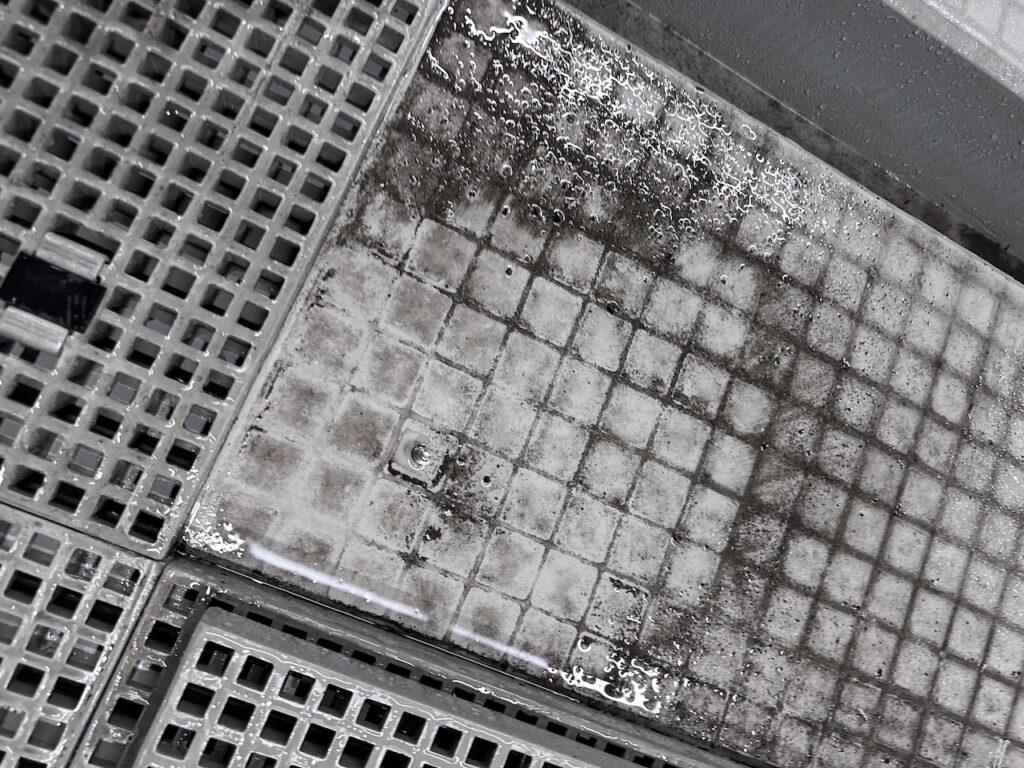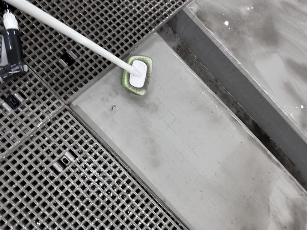 かたやオーナー様専用のブースの床はというと・・・汚れは水とブラシで簡単に落ちています。