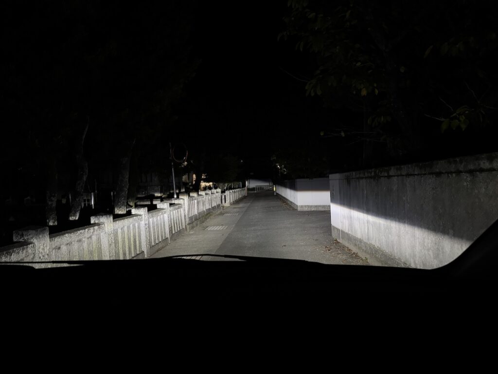 この明るさに慣れると、明るさアップできない純正LEDライトが物足りなくなりますね・・・