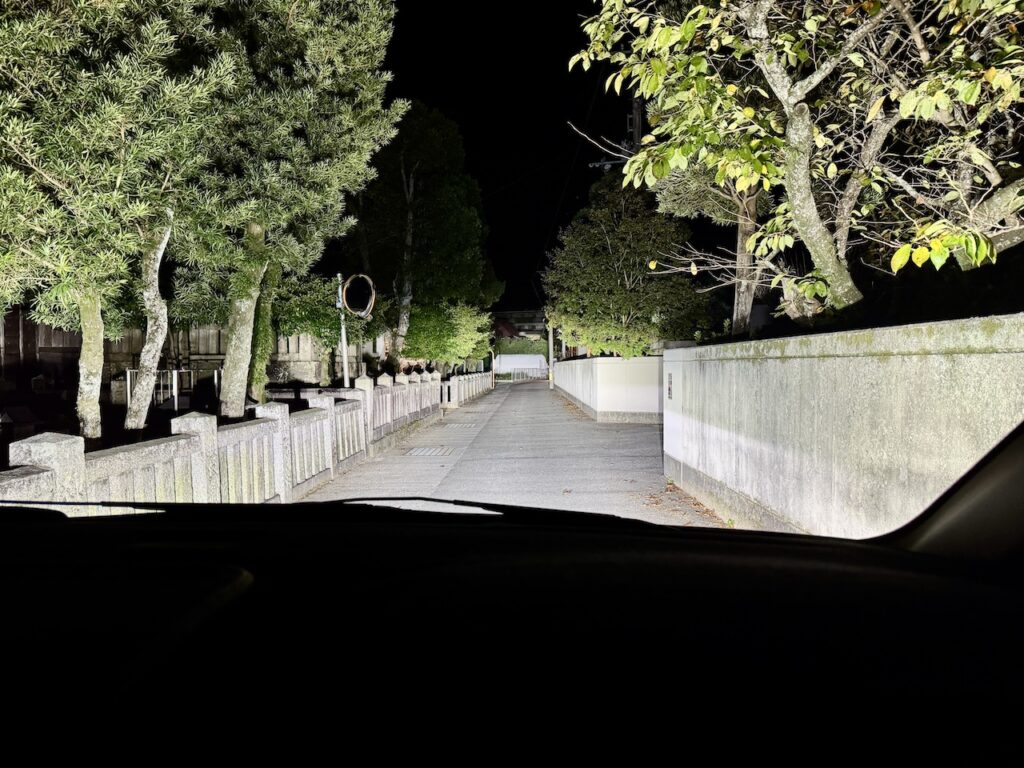 今時の新車の明るいLEDよりもさらに明るいサーチライト並みです。