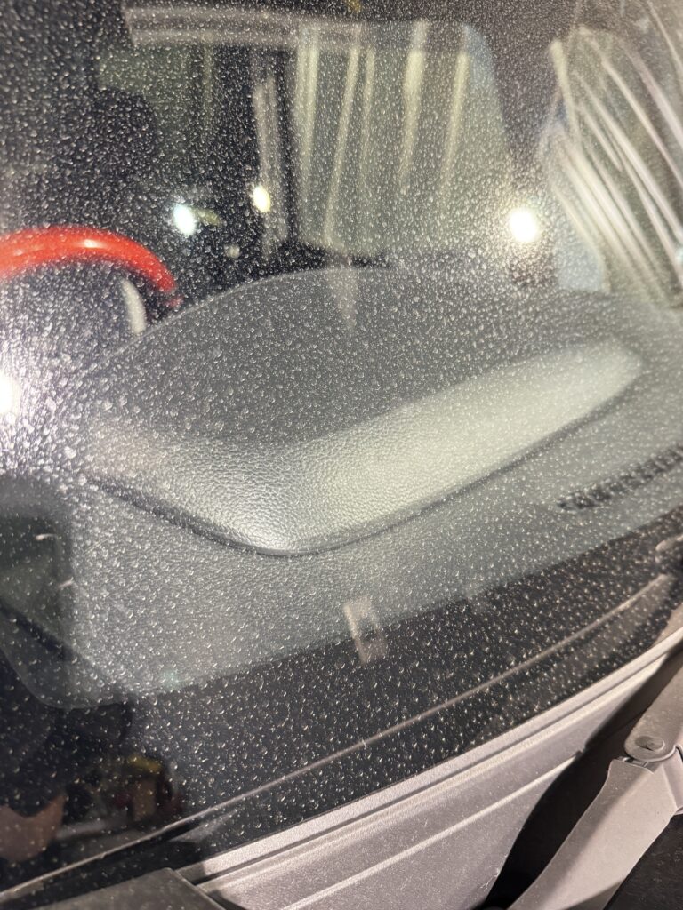 今回のお車は、花粉と黒い縦筋汚れが重なって、